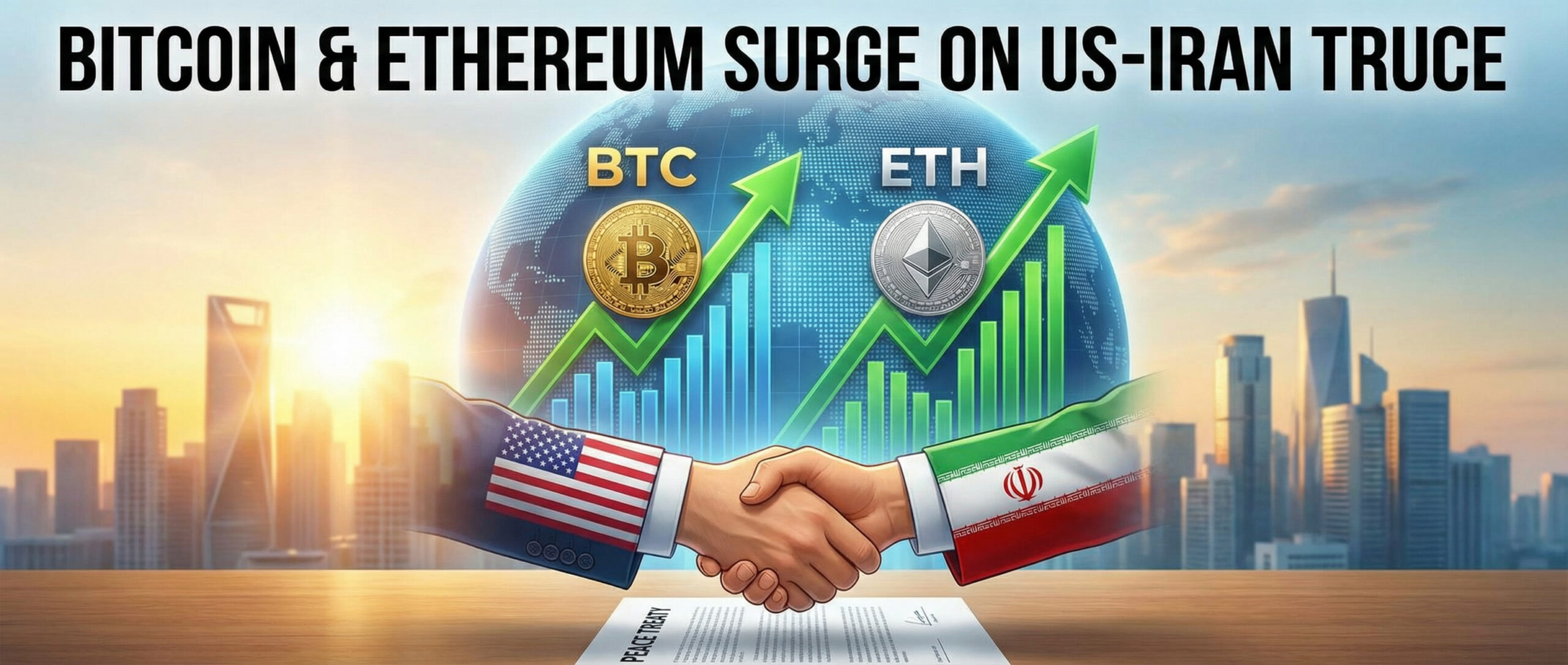 В течение суток после объявления о двухнедельном перемирии между США и Ираном, которое сделал Дональд Трамп, первая криптовалюта подорожала примерно на 4%, а эфир — на 6%. Это стало наиболее значительным однодневным движением более чем за месяц, прервавшим недавнюю тенденцию к снижению.